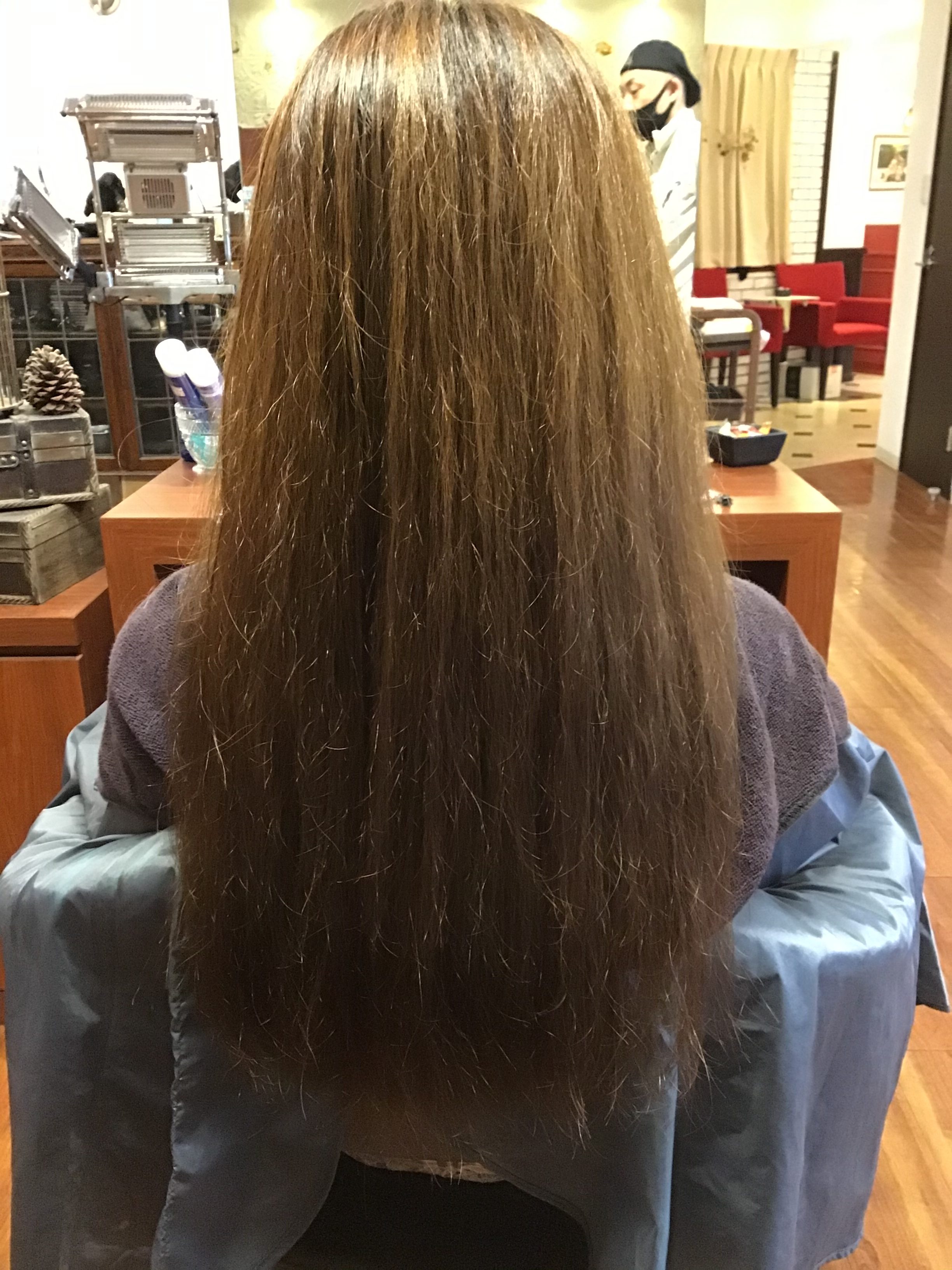 今回は、前回より、さらに髪をキレイにする施術とともに、色味を補充していきます。