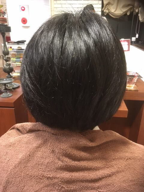 上の髪をしっかりかぶせて作ると、ずいぶんすっきりしたスタイルになると思いますよ!!